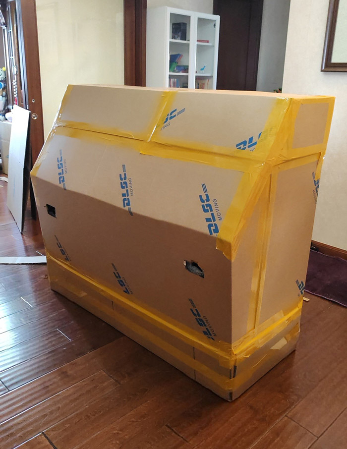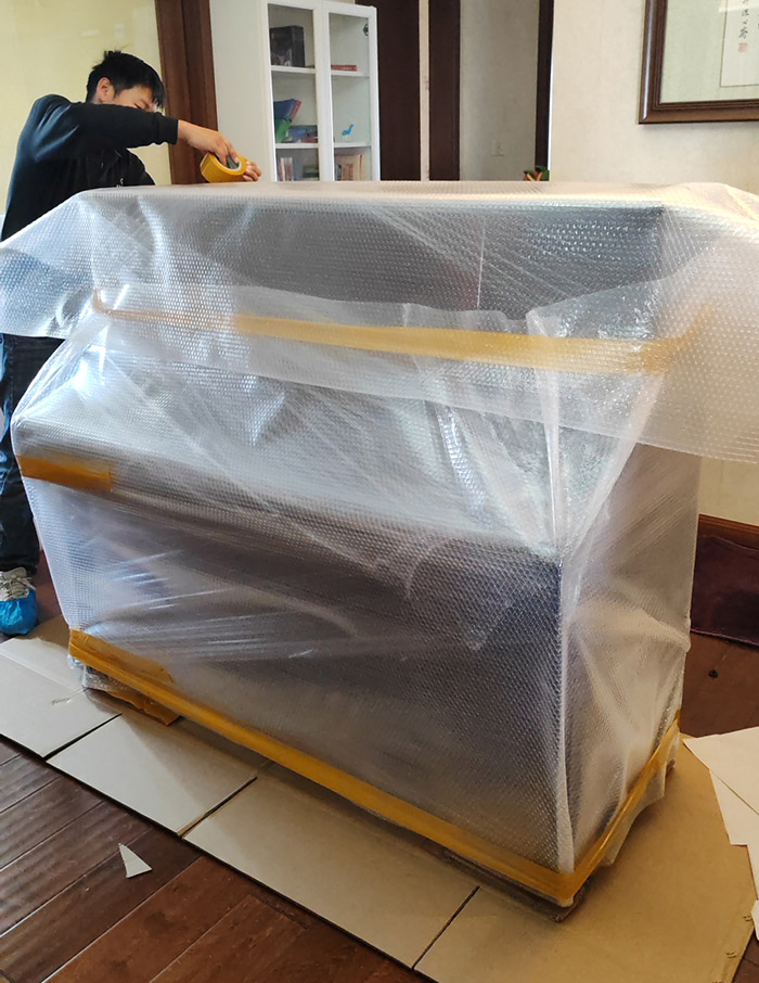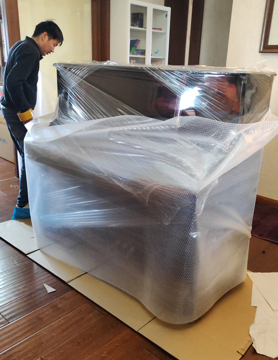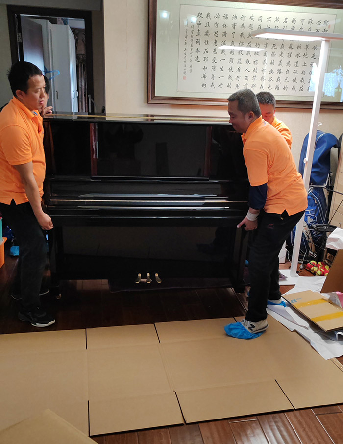 钢琴擦拭后抬到五层厚加硬纸板上